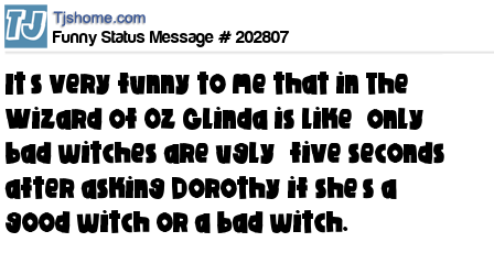 X says It’s very funny to me that in The Wizard of Oz Glinda is like “only bad witches are ugly” five seconds after asking Dorothy if she’s a good witch or a bad witch.