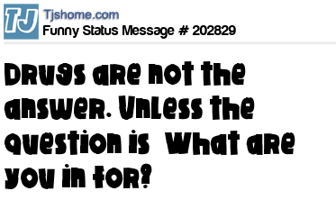 - # 208196 Drugs are not the answer. Unless the question is "What are you in for?"