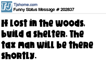 X says If lost in the woods, build a shelter. The tax man will be there shortly.