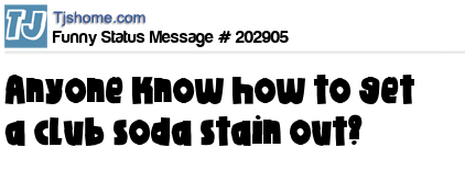 - # 122874 She told me a little bit of soda would take the stain out of my white shirt,im guessing she didnt mean grape soda!!!