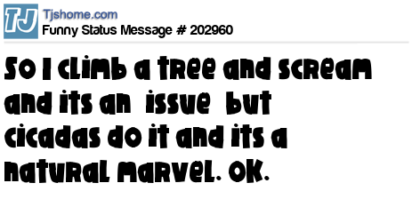 X says So I climb a tree and scream and its an “issue” but cicadas do it and its a natural marvel. OK.