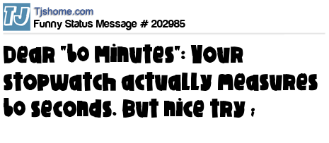 X says Dear "60 Minutes": Your stopwatch actually measures 60 seconds. But nice try ;