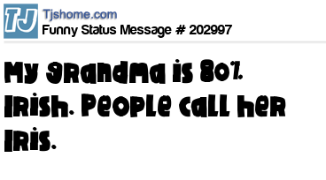 X says My grandma is 80% Irish. People call her Iris.