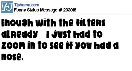 - # 203013 Stop with the filters already – I just had to zoom in to see if you had a nose.