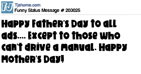 X says Happy Father's Day to all ads.... Except to those who can't drive a manual. Happy Mother's Day!