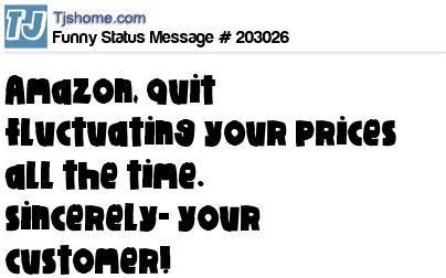 X says Amazon, quit fluctuating your prices all the time. sincerely- your customer!