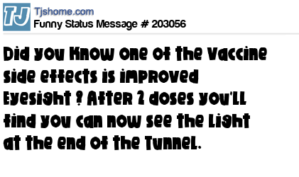 X says Did you know one of the Vaccine side effects is improved Eyesight ? After 2 doses you'll find you can now see the light at the end of the Tunnel.