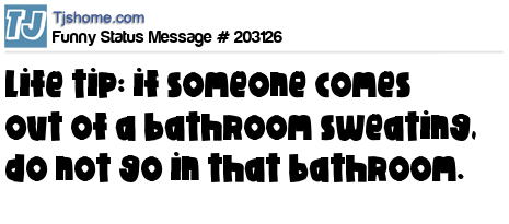 - # 172723 #Life tip: if someone comes out of a #bathroom sweating, do not go in that bathroom.