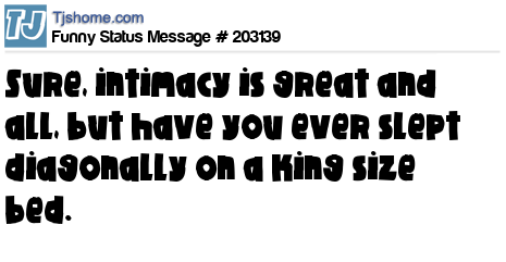 X says Sure, intimacy is great and all, but have you ever slept diagonally on a king size bed.