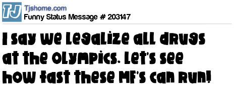 X I say we legalize all drugs at the Olympics. Let's see how fast these MF's can run!