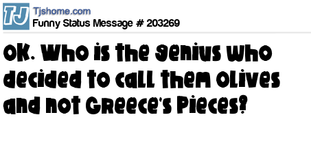 X says OK. Who is the genius who decided to call them Olives and not Greece's Pieces?