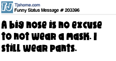 X says A big nose is no excuse to not wear a mask. I still wear pants.