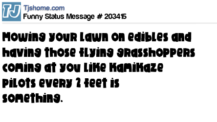 X says Mowing your lawn on edibles and having those flying grasshoppers coming at you like kamikaze pilots every 2 feet is something.