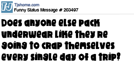 - # 207125 I pack underwear as if I plan to crap myself for 40 days and nights