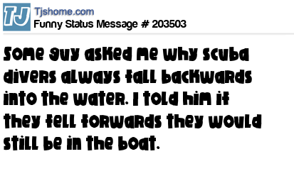 X says Some guy asked me why scuba divers always fall backwards into the water. I told him if they fell forwards they would still be in the boat.