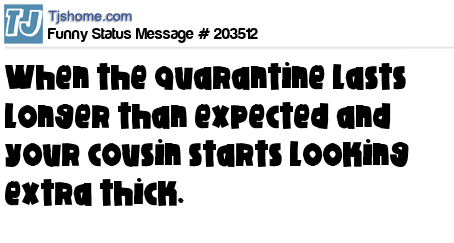 X says When the quarantine lasts longer than expected and your cousin starts looking extra thick.
