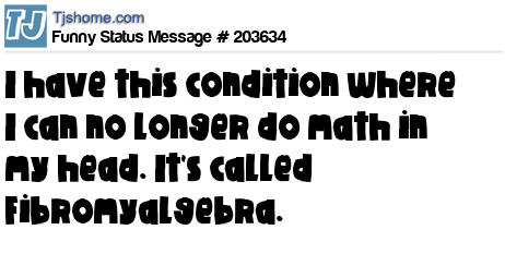 X says I have this condition where I can no longer do math in my head. It's called Fibromyalgebra.