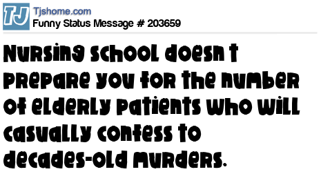 X says Nursing school doesn’t prepare you for the number of elderly patients who will casually confess to decades-old murders.