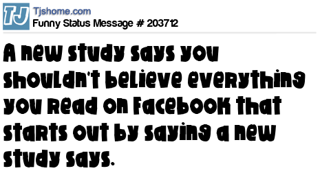 - # 189206 A new study says that a lot of people on social media today will believe anything that starts out by saying a new study says.