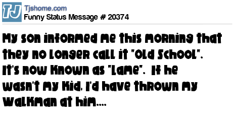X my son informed me this morning that they no longer call it "Old School". It's now known as "Lame". If he wasn't my kid, I'd have thrown my Walkman at him....