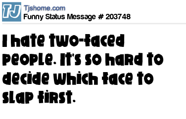 - # 204983 the problem with two-faced people is that you never sure which face to slap.