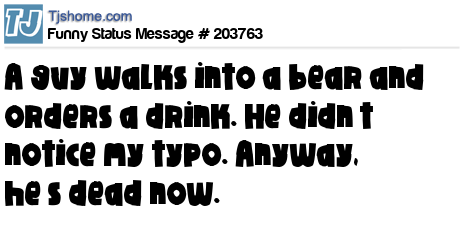 X says A guy walks into a bear and orders a drink. He didn’t notice my typo. Anyway, he’s dead now.