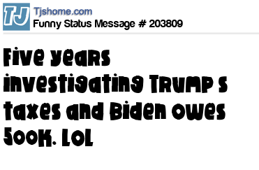 X says Five years investigating Trump’s taxes and Biden owes 500k. Lol