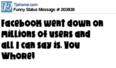X says Facebook went down on millions of users and all I can say is, You Whore!