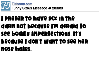X says I prefer to have s€x in the dark not because I'm afraid to see bodily imperfections. It's because I don't want to see her nose hairs.