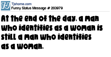 X is At the end of the day, a man who identifies as a woman is still a man who identifies as a woman.