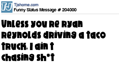 X says unless you’re ryan reynolds driving a taco truck, I ain’t chasing sh*t