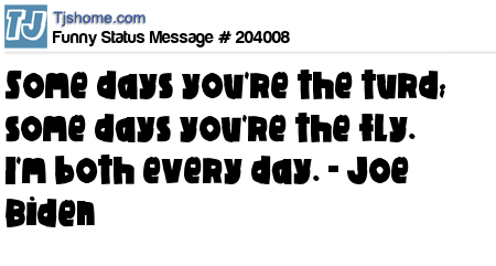 X says Some days you're the turd; some days you're the fly. I'm both every day. - Joe Biden