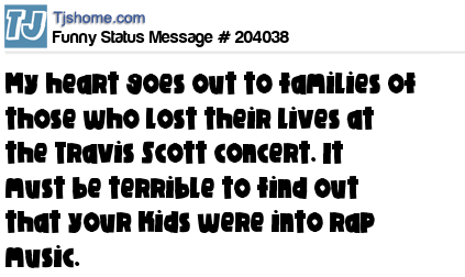 X says My heart goes out to families of those who lost their lives at the Travis Scott concert. It must be terrible to find out that your kids were into rap music.