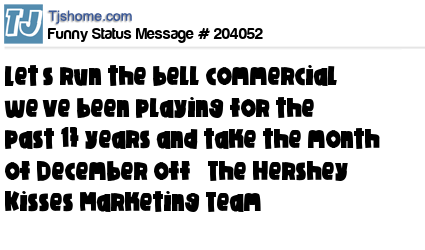 X says Let’s run the bell commercial we’ve been playing for the past 17 years and take the month of December off– The Hershey Kisses Marketing Team