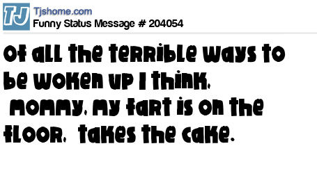 X says Of all the terrible ways to be woken up I think, “mommy, my fart is on the floor,” takes the cake.
