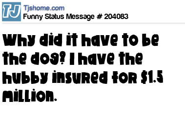 X says Why did it have to be the dog? I have the hubby insured for $1.5 million.