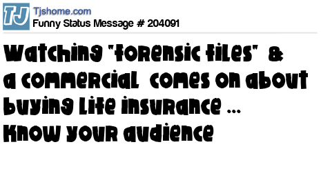 X says watching "forensic files" & a commercial comes on about buying life insurance ... know your audience