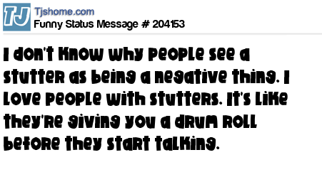 X I don't know why people see a stutter as being a negative thing. I love people with stutters. It's like they're giving you a drum roll before they start talking.