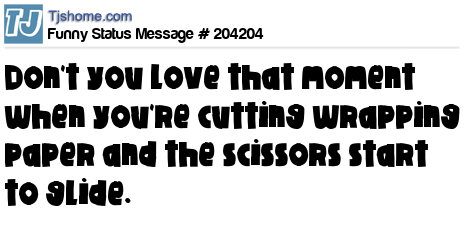 X says Don't you love that moment when you're cutting wrapping paper and the scissors start to glide.