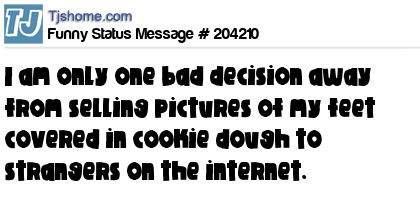 X says I am only one bad decision away from selling pictures of my feet covered in cookie dough to strangers on the internet.