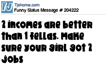 X says 2 incomes are better than 1 fellas. Make sure your girl got 2 jobs