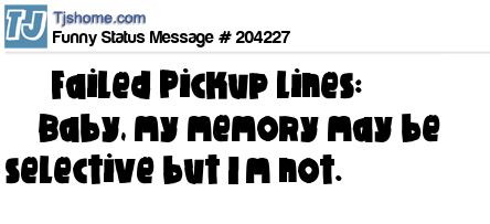 X says       Failed Pickup Lines:      “Baby, my memory may be selective but I’m not.”