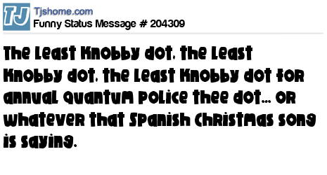 X says The least knobby dot, the least knobby dot, the least knobby dot for annual quantum police thee dot… or whatever that Spanish Christmas song is saying.