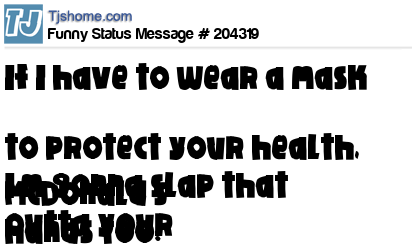 - # 203794 If I have to wear a mask to protect your health, I’m gonna slap that McDonald’s outta your hands too.
