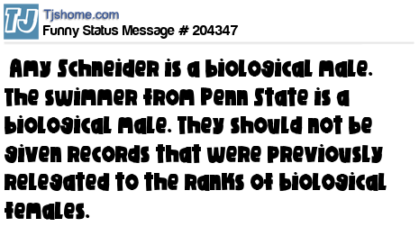 X says Amy Schneider is a biological male. The swimmer from Penn State is a biological male. They should not be given records that were previously relegated to the ranks of biological females.