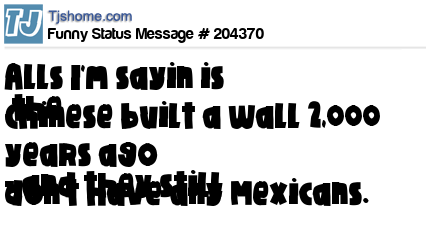 - # 173898 Alls I'm sayin is the Chinese built a wall 2,000 years ago - and they still don't have any Mexicans. . .