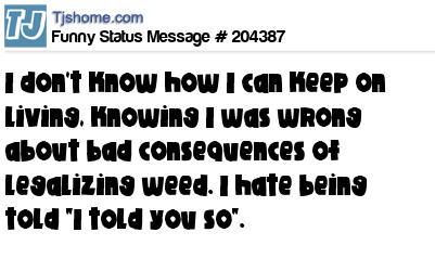 X is I don't know how I can keep on living, knowing I was wrong about bad consequences of legalizing weed. I hate being told "I told you so".