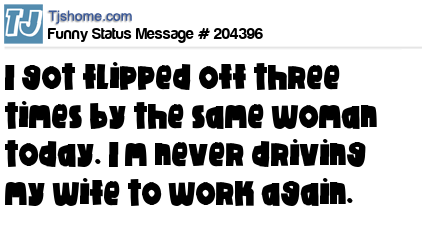 X says I got flipped off three times by the same woman today. I’m never driving my wife to work again.
