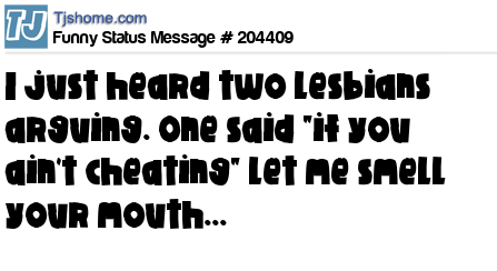 X says I just heard two lesbians arguing. One said "if you ain't cheating" let me smell your mouth...