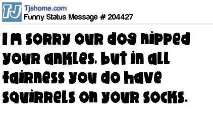 - # 182913 I’m sorry my dog nipped your ankles, but in all fairness you do have squirrels on your socks.